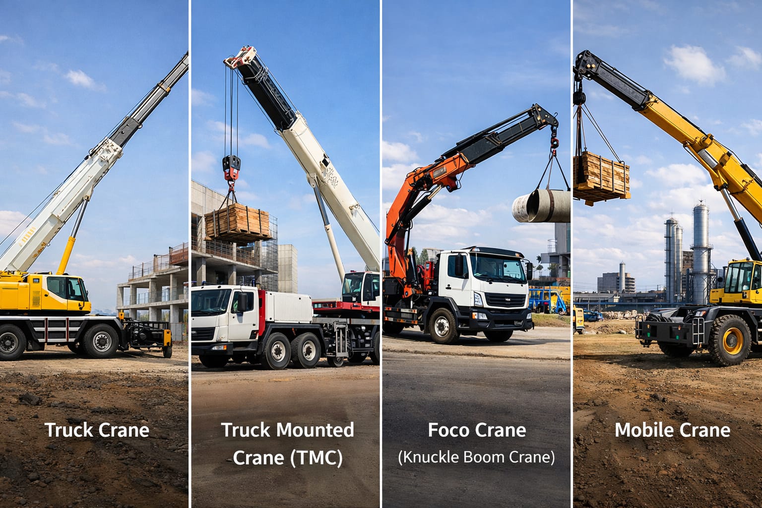 Dalam pekerjaan industri dan konstruksi, istilah truck crane, truck mounted crane (TMC), dan foco crane sering digunakan secara bergantian. Padahal, ketiga jenis crane tersebut memiliki karakteristik, fungsi, dan aplikasi kerja yang berbeda.